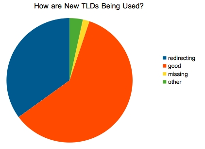60% доменов в новых зонах содержат действующие сайты, 35% - используются для редиректа. Среди них значительная часть относится к зоне .link.